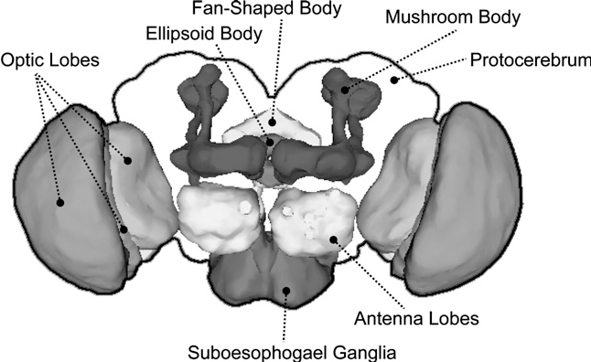 - Major brain regions: The Drosophila brain comprises several key regions with functional analogies to mammalian brain structures: