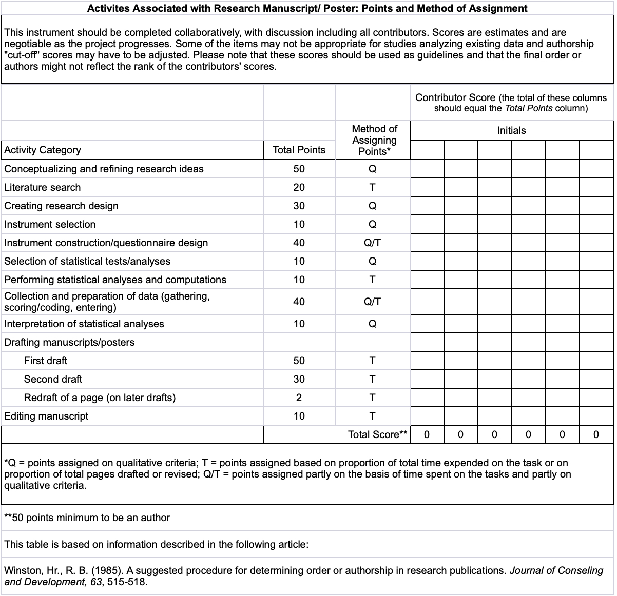 Authorship on posters, chapters, and peer-reviewed journal article is determined by several factors. I will generally be the senior / corresponding author on all research products coming out of this lab. This is usually the last author, but occasionally may be the first author. Dissertations, when submitted for publication in a peer-reviewed journal, will always have the lab member first and me last. For conference posters, the presenting lab member is almost always the first author (with me as last author). Other (middle) authors should have made a significant contribution to the conception, design, conduct, analysis, and/or interpretation of the project, and the author list needs to be approved by me before submission. Finally, all ideas conceived and data collected in our lab are lab property. Data, graphs, abstracts, pre-publication manuscripts, etc., should never be sent to anyone outside the lab before clearing it with me first.